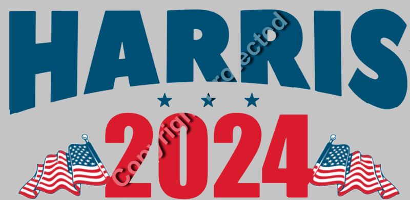 Kamala Harris 2024 election campaign imagery with patriotic American flags and bold lettering