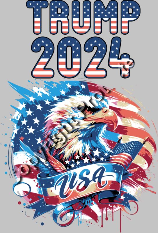 Trump 2024 patriotic eagle graphic with USA flag colors and stars
